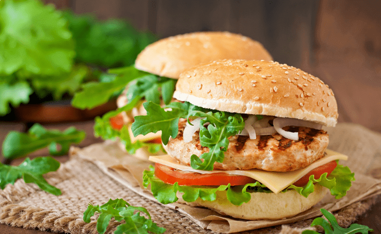 (Pão, ovo, presunto, Salada, frango, hambúrguer e queijo)
